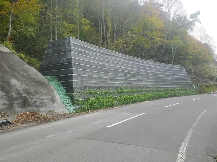 地方道路交付金工事(災害防除) 仁郷大湯線 | 湯沢市皆瀬字小安奥山 | 落石防護補強土擁壁 | 雄勝地域振興局 | 令和3年10月 |
