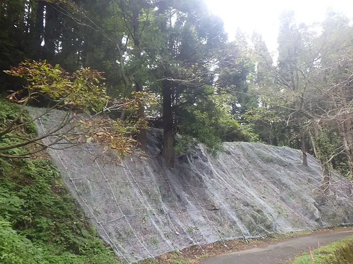 市道湯ノ沢線落石防護網設置工事 | 湯沢市下院内字湯ノ尻山 | 落石防護網 | 湯沢市 | 令和3年10月 |