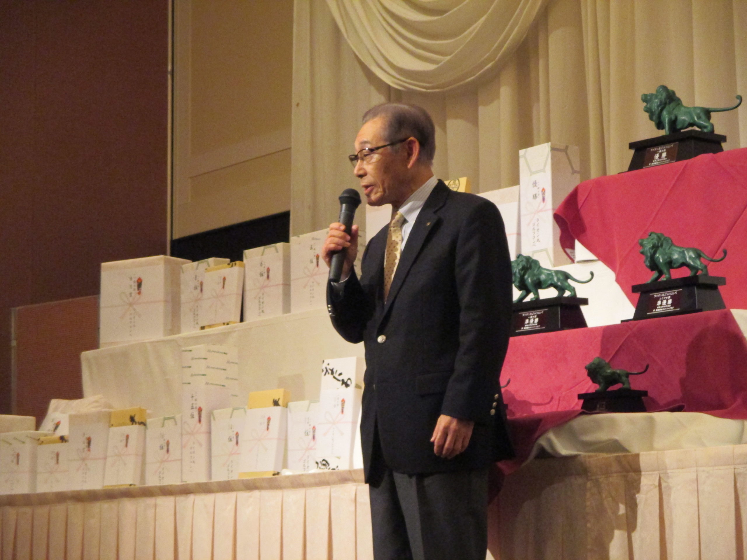 順位表彰の他、一般・シニアの各上位3名には記念のライオン像が贈呈されました。